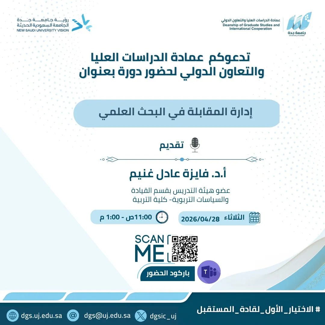 تتفرد عمادة الدراسات العليا والتعاون الدولي بجامعة جدة بتقديم برامج دراسات عليا في العديد من التخصصات المتميزة والمتنوعة وتواكب رؤية السعودية ٢٠٣٠م .