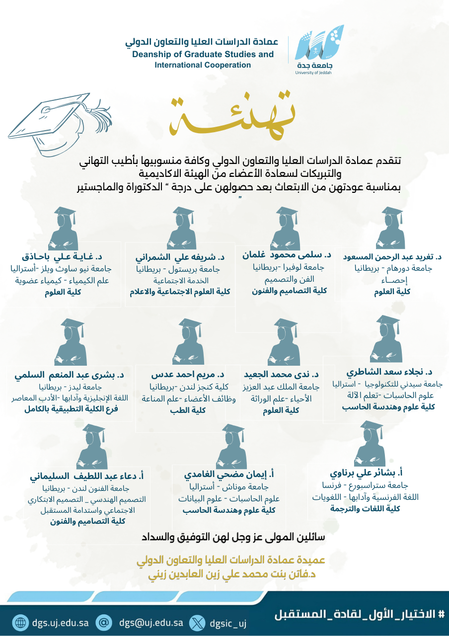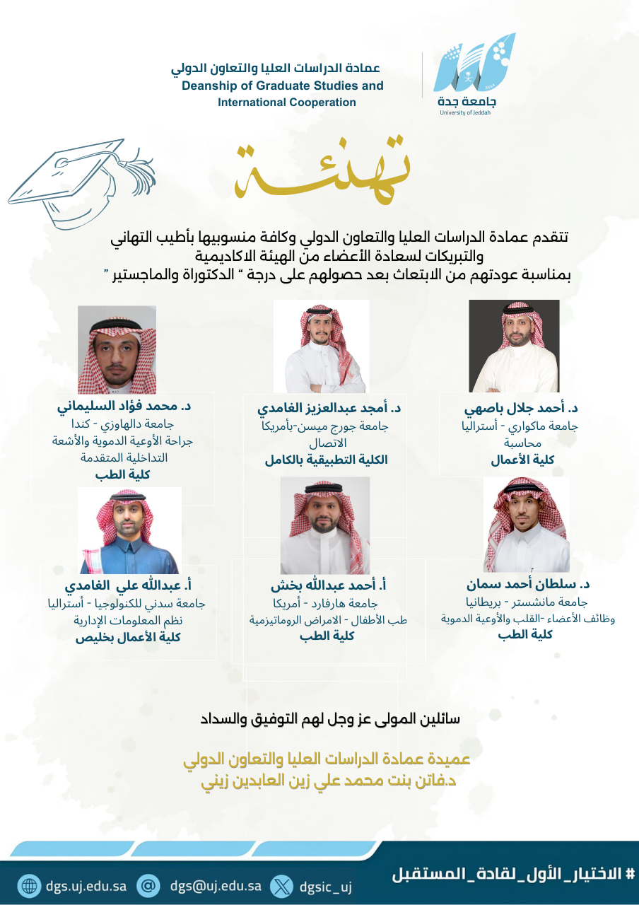 تتفرد عمادة الدراسات العليا والتعاون الدولي بجامعة جدة بتقديم برامج دراسات عليا في العديد من التخصصات المتميزة والمتنوعة وتواكب رؤية السعودية ٢٠٣٠م .